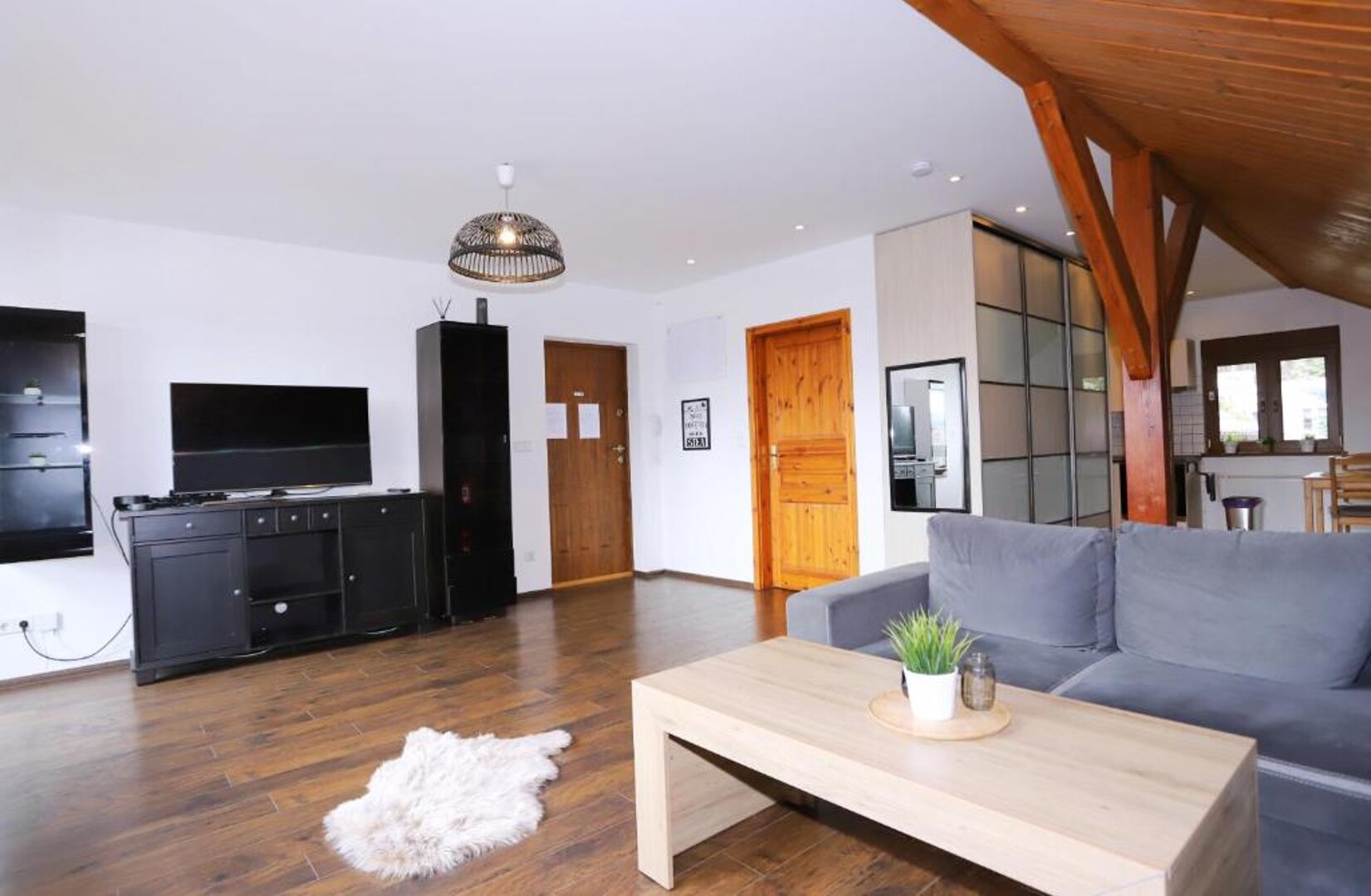 Obiekt obejmuje trzy eleganckie apartamenty, z których każdy ma powierzchnię 70 m². Każdy apartament składa się z przytulnej sypialni, przestronnego salonu oraz nowoczesnej łazienki, co czyni go idealnym miejscem na relaks. Dodatkowo, jeden z apartamentów ma wyjątkową dwupoziomową aranżację, zapewniającą jeszcze większą przestronność i komfort. Całość wyposażona jest w szybkie WiFi, co pozwala na utrzymanie ciągłej łączności ze światem.