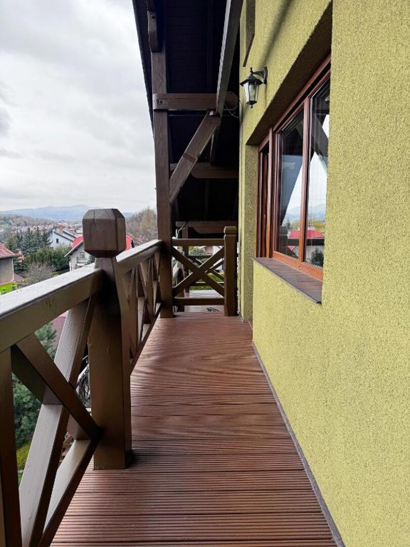 W obiekcie znajdują się również liczne tarasy i balkony, które oferują spektakularne widoki na otaczające góry, idealne do porannej kawy lub wieczornych spotkań z rodziną i przyjaciółmi. Przestronny ogród otaczający nieruchomość stwarza doskonałe warunki do relaksu oraz organizacji przyjęć na świeżym powietrzu.