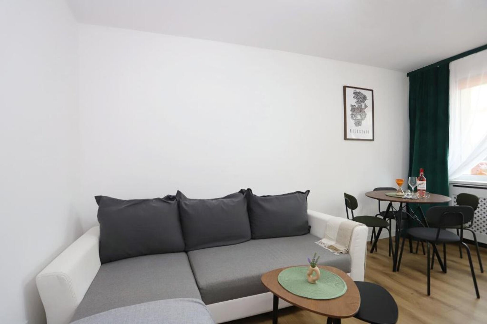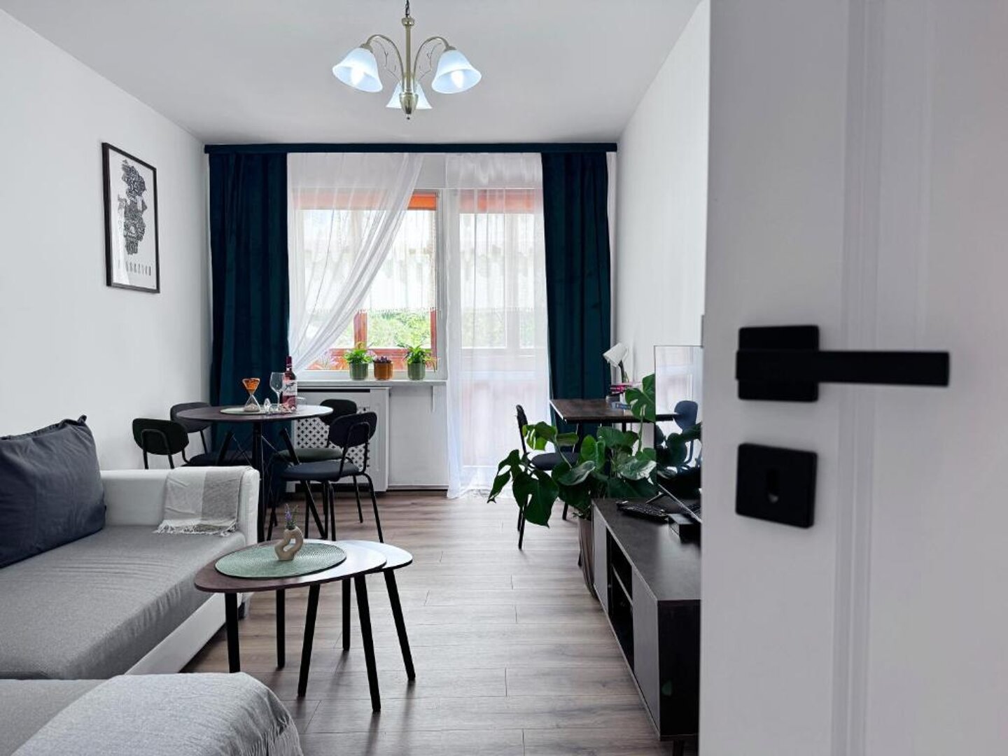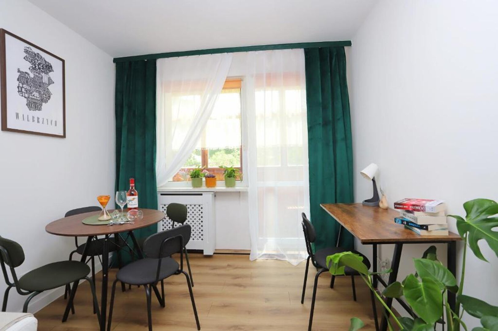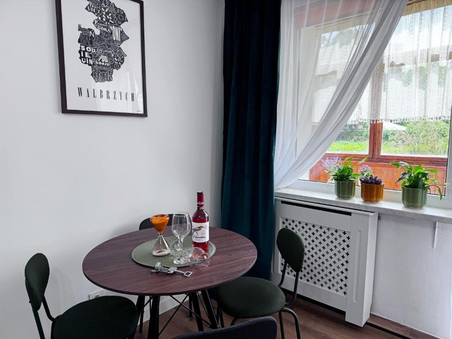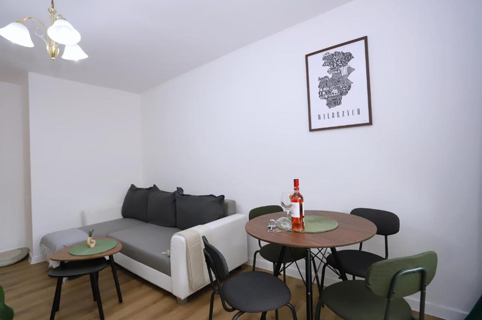 Oferujemy Państwu komfortowy apartament zlokalizowany w malowniczej dzielnicy Podzamcze w Wałbrzychu, idealny na wypoczynek dla 4 osób. Apartament wyróżnia się nowoczesnym wystrojem, który łączy wygodę z przytulną atmosferą. W skład apartamentu wchodzi przestronna sypialnia z wygodnym podwójnym łóżkiem oraz salon z rozkładaną sofą, co zapewnia komfortowy sen dla wszystkich gości. Duże okna wpuszczają mnóstwo naturalnego światła, a z salonu można wyjść na balkon, gdzie można cieszyć się poranną kawą lub wieczornym relaksem z pięknym widokiem na okolicę. Kuchnia jest w pełni wyposażona w niezbędne sprzęty, takie jak lodówka, kuchenka, mikrofalówka oraz naczynia, co umożliwia samodzielne przygotowywanie posiłków. Przytulna jadalnia stanowi idealne miejsce na wspólne biesiadowanie. Apartament dysponuje również nowoczesną łazienką z prysznicem, co zapewnia wygodę i komfort podczas pobytu. Całość jest utrzymana w jasnych kolorach, co sprawia, że przestrzeń jest jeszcze bardziej przyjemna. Dzięki dogodnej lokalizacji, goście mogą łatwo odkrywać atrakcje Wałbrzycha, a także korzystać z uroków natury w pobliskich Sudetach. To idealne miejsce na wypoczynek w gronie przyjaciół lub rodziny.