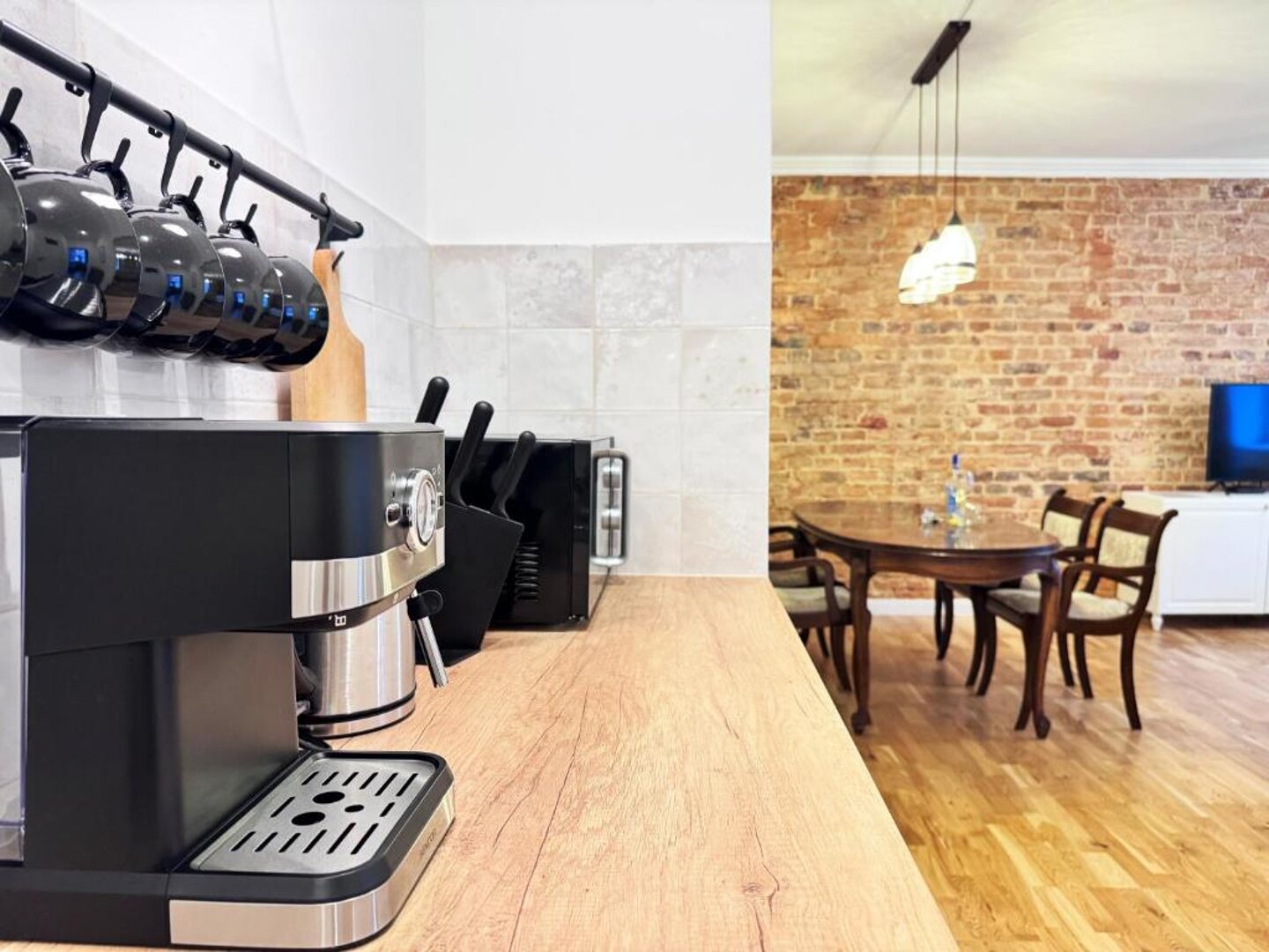 W sercu Wałbrzycha, między Ratuszem a Rynkiem, przy ulicy Sienkiewicza, znajduje się apartament na drugim piętrze zabytkowej kamienicy. Łączy on historyczny klimat z nowoczesnym komfortem. Składa się z kuchni, salonu i sypialni. Kuchnia wyposażona jest w nowoczesne urządzenia, a blat i szafki zapewniają funkcjonalność. Salon z wygodnymi meblami tworzy przytulną przestrzeń. Sypialnia oferuje komfortowe łóżko i spokój. Ceglana ściana nadaje wnętrzu industrialny charakter, który współgra z zabytkowymi meblami. Apartament zawiera wszystko niezbędne do życia, w tym nowoczesne sanitariaty, telewizory i szybki internet. Położony w centrum miasta, zapewnia łatwy dostęp do atrakcji, sklepów i komunikacji. To unikalne połączenie historii i nowoczesności, idealne dla osób ceniących sobie wyjątkowy charakter i komfort.